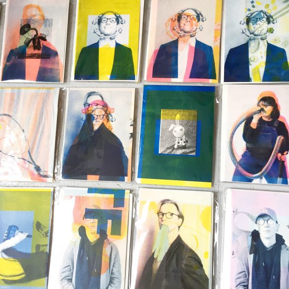 Interesting images arose accidentally during the process of creating the master screens and the fine tuning of the Risograph machine. I’ve selected the 20 most appealing accidents for this edition. So all images are unique and it will be impossible to recreate them again.